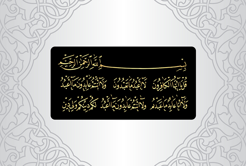 Arabic Calligraphy, Verses no 1-6, "Al-Kafirun-109" of the Quran. (Qul Sharif)